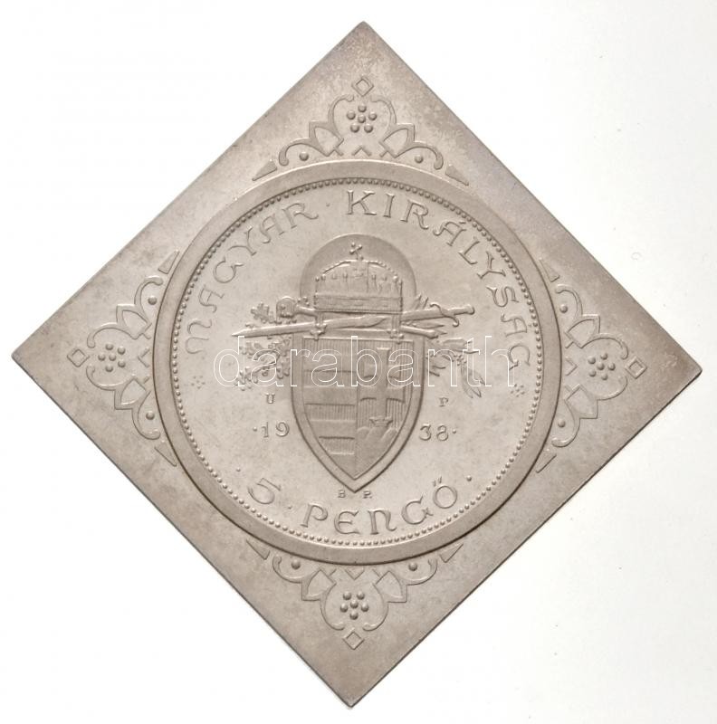 Hungary 1938. 5 Pengő klippe Ag "900th Anniversary - Death of Saint Stephen" trial strike with U.P. mark (50,05g/45mm) C:UNC,AU(P)