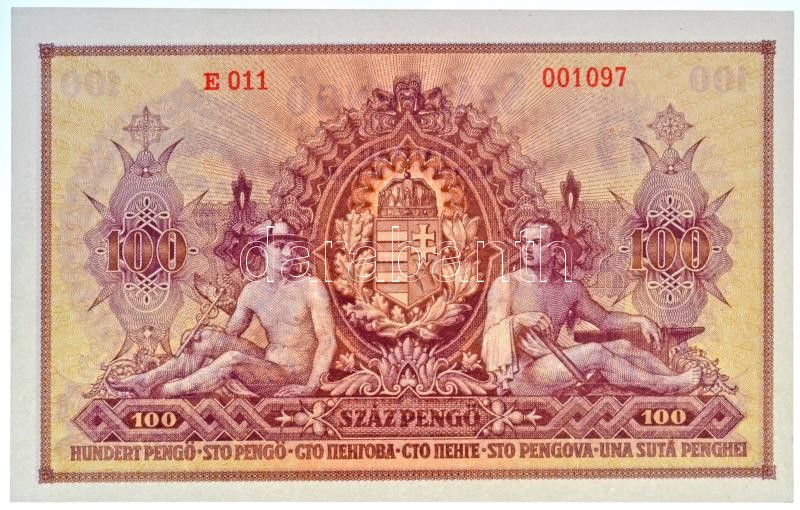 Beschreibung: 1943. 100P "Szálasi-kiadás" kiadatlan, "E011 001097" sorszámmal T:I / Hungary 1943. 100 Pengő "Szálasi edition" officialy unissued, with "E011 001097" serial number C:UNC