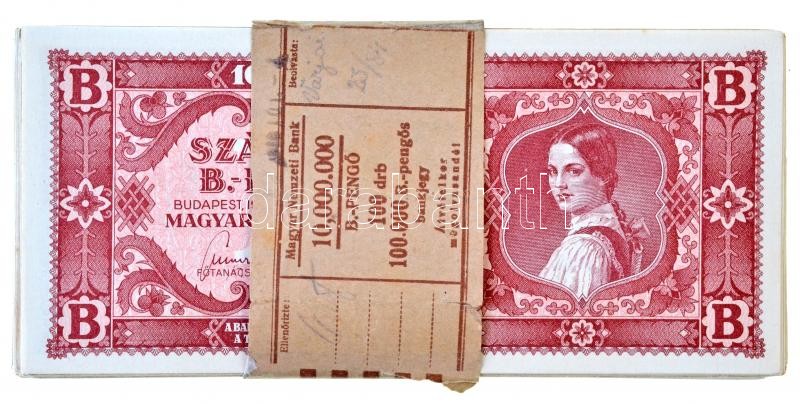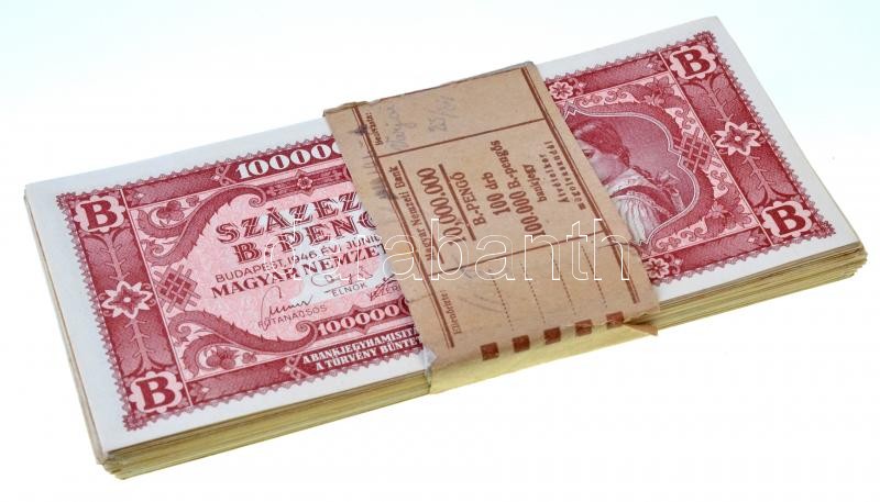 Beschreibung: 1946. 100.000BP (100x) eredeti, két helyen ragasztott, sérült "Magyar Nemzeti Bank" kötegelővel T:I,I-
