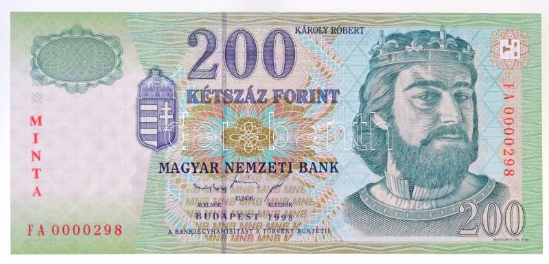 1998. 200Ft "MINTA" felülnyomással "FA 0000298" T:I / Hungary 1998. 200 Forint with red "MINTA(SPECIMEN)" overprint and "FA 0000298" serial number C:UNC