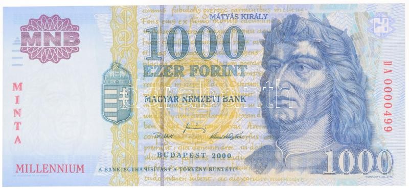 / Hungary 2000. 1000 Forint "MINTA(SPECIMEN)" "Millenium", "DA 0000499" prefix and serials C:AU