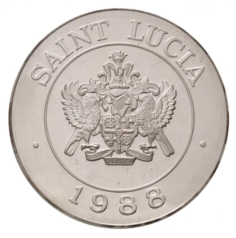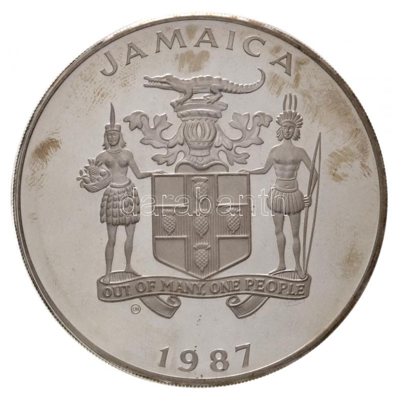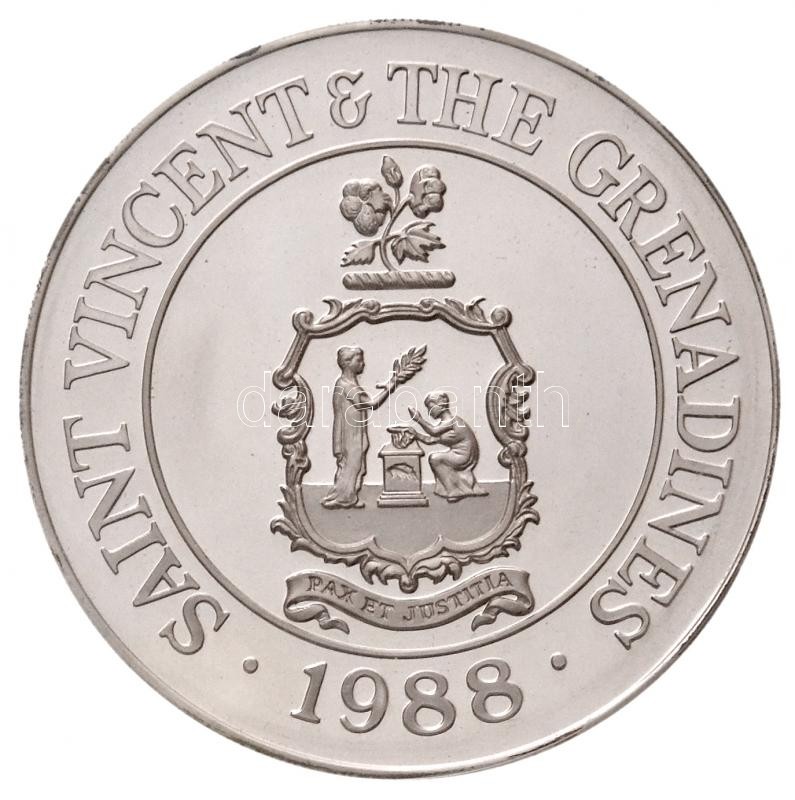 "A Karib-térség madarai" sorozat érmei, teljes sorozat, eredeti dísztokban, tanúsítvánnyal és német nyelvű tájékoztató füzettel benne: Jamaika 1987. 100D Ag "Piroscsőrű szalagoskolibri" (129,6g/0.925) + Grenada 1988. 100D Ag "Grenadai Galamb" (129,6g/0.925) + Saint Kitts és Nevis 1988. 100D Ag "Zöld torkú kolibri" (129,6g/0.925) + Saint Lucia 1988. 100D Ag "Trópusi madarak" (129,6g/0.925) + Dominika 1988. 100D Ag "Császáramazon" (129,6g/0.925) + Antigua és Barbuda 1988. 100D Ag "Pásztorgém" (129,6g/0.925) + Saint Vincent és Grenadine 1988. 100D Ag "Pelikán" (129,6g/0.925) T:PP fo., patina, ujjlenyomat / "Birds of the Caribbean" Coin Collection, full set in original case, with certificate and German language information booklet, with: Jamaica 1987. 100 Dollars Ag "Streamer-tailed Hummingbird" (129,6g/0.925) + Grenada 1988. 100 Dollars Ag "Grenada Dove" (129,6g/0.925) + Saint Kitts &Nevis 1988. 100 Dollars Ag "Green-throated Hummingbird" (129,6g/0.925) + Saint Lucia 1988. 100 Dollars Ag "Tropical Birds" (129,6g/0.925) + Dominica 1988. 100 Dollars Ag "Imperial Parrott" (129,6g/0.925) + Antigua és Baruda 1988. 100 Dollars Ag "Cattle egret" (129,6g/0.925) + St. Vincent & The Grenadines 1988. 100 Dollars Ag "Pelican" (129,6g/0.925) C:PP spotted, patina, fingerprint Krause KM#139, KM#17, KM#6, KM#17, KM#21, KM#4, KM#15