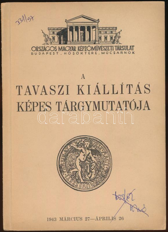 1943 Tavaszi kiállítás képes tárgymutatója. Budapest, 1943, Országos Magyar Képzőművészeti Társulat. Kiadói papírkötés, fekete-fehér fotókkal, ceruzás bejegyzésekkel, jó állapotban