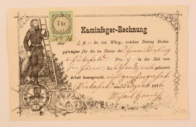 1876 Díszes kéményseprő számla, 7kr illetékbélyeggel, Pinkafalva (Pink... https://www.darabanth.com/de/280-Fernauktion/280.0/Andere-Sammelgebiete/Dokument~16/1876-Diszes-kemenysepro-szamla-7kr-illetekbelyeggel-Pinkafalva-Pinkafeld-Burgenland-Ausz~II1443314