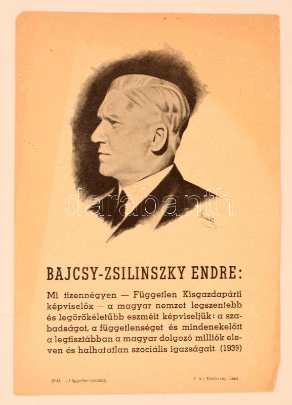 1940 Bajcsy Zsilinszky Endre róplap https://www.darabanth.com/de/280-Fernauktion/280.0/Andere-Sammelgebiete/Drucksachen~43/1940-Bajcsy-Zsilinszky-Endre-roplap~II1445471