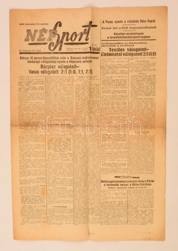 1950 a Népsport dec. 27-i lapszáma érdekes hírekkel https://www.darabanth.com/de/280-Fernauktion/280.0/Andere-Sammelgebiete/Drucksachen~43/1950-a-Nepsport-dec-27-i-lapszama-erdekes-hirekkel~II1440934