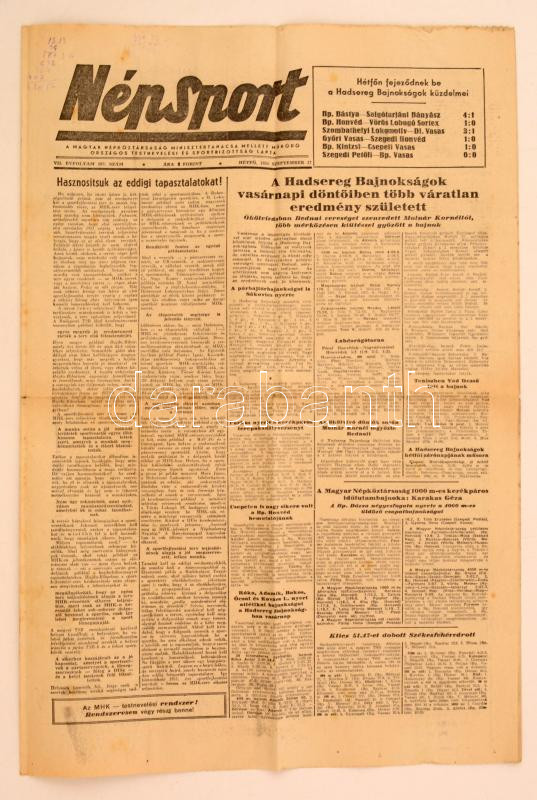 1951 a Népsport szept. 17-i lapszáma érdekes hírekkel https://www.darabanth.com/de/280-Fernauktion/280.0/Andere-Sammelgebiete/Drucksachen~43/1951-a-Nepsport-szept-17-i-lapszama-erdekes-hirekkel~II1440953