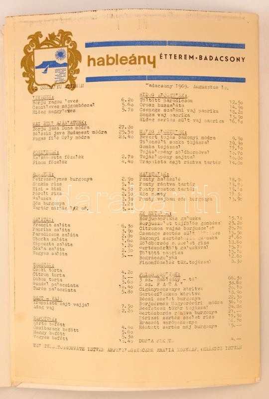 1969 Badacsony, a Hableány Étterem étlapja https://www.darabanth.com/de/280-Fernauktion/280.0/Andere-Sammelgebiete/Drucksachen~43/1969-Badacsony-a-Hableany-Etterem-etlapja~II1443725