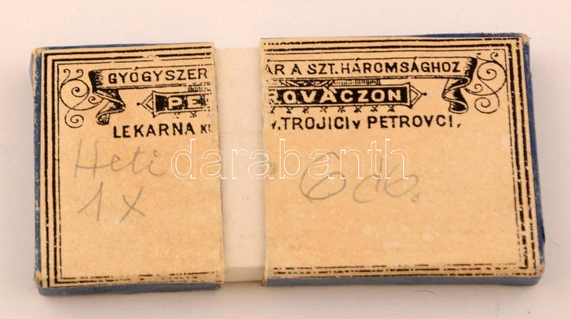 Petrovác, a Szentháromság gyógyszertár gyógyszeres dobozkája https://www.darabanth.com/de/280-Fernauktion/280.0/Andere-Sammelgebiete/Flohmarkt~11/Petrovac-a-Szentharomsag-gyogyszertar-gyogyszeres-dobozkaja~II1442972