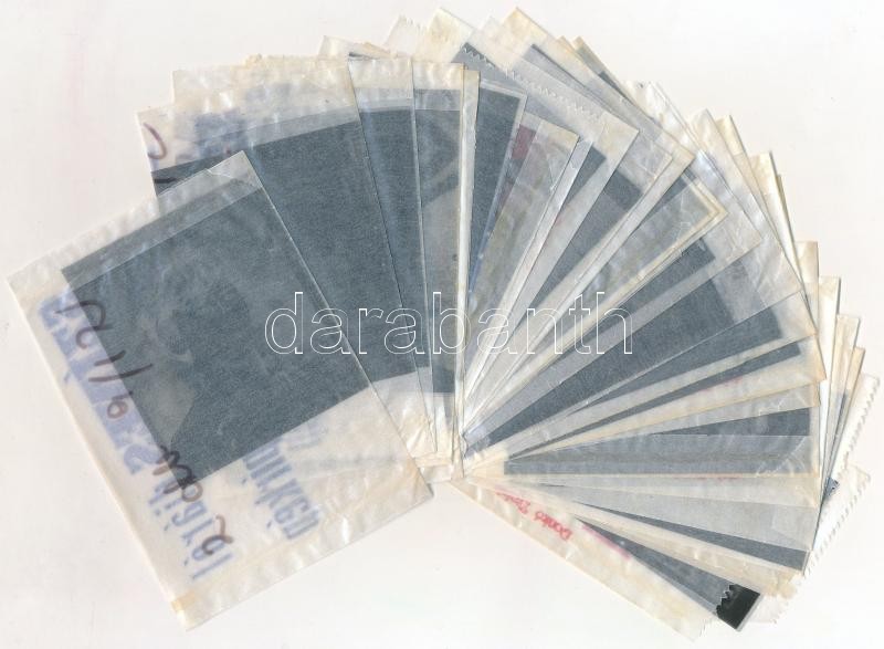 ,,Két pont között" című magyar film egyes jeleneteit és színészeit ábrázoló negatívok, ezekről készítették a mozikban kiállított, új filmeket reklámozó fényképeket, 27 db felvétel, 6x7 cm és 4x7 cm