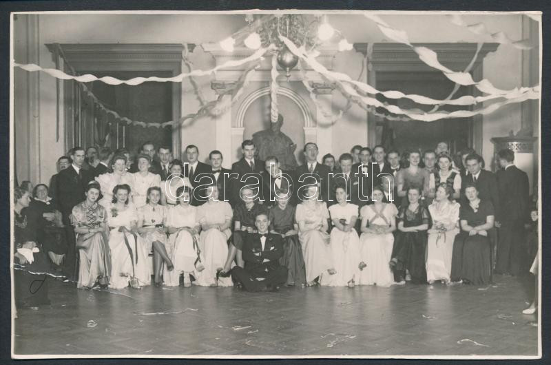 Beschreibung: 1940 Széchenyi öregdiákok bálja, Harsányi Gyula felvétele, hátulján feliratozva, pecséttel jelzett, 11,5×17,5 cm