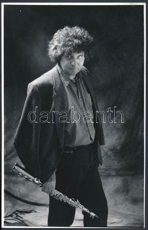Beschreibung: Dés László fellépés közben, fotó, hátulján feliratozva, 24×15 cm