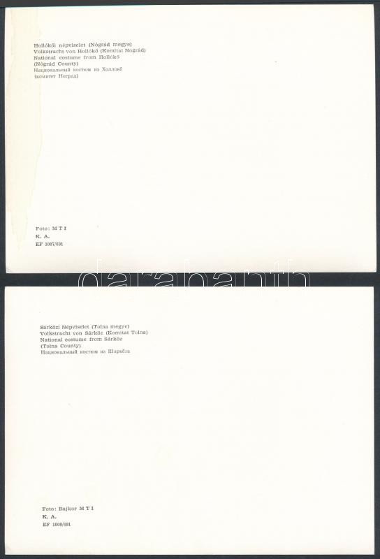 Beschreibung: Sárközi ill. hollókői népviselet, 2 db MTI-fotó, hátuljukon feliratozva, 18×13 cm