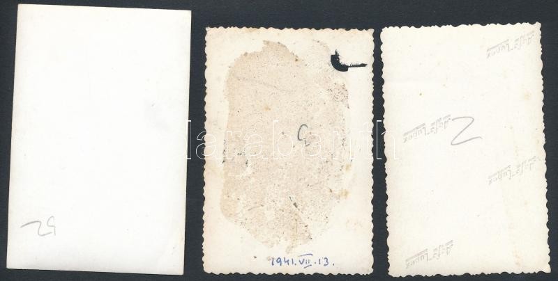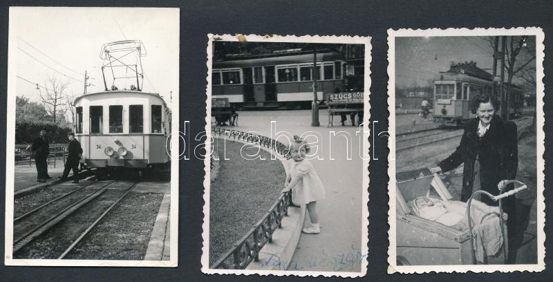 Beschreibung: cca 1941 Járműfotók: 2 db villamos és 1 db fogaskerekű, egy részük hátulján feliratozva,9,5×6 cm