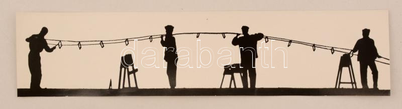 Beschreibung: cca 1975 Magyar Alfréd: Brigád, feliratozott vintage fotóművészeti alkotás, kiállítási emlékpecsétekkel, 9x39 cm
