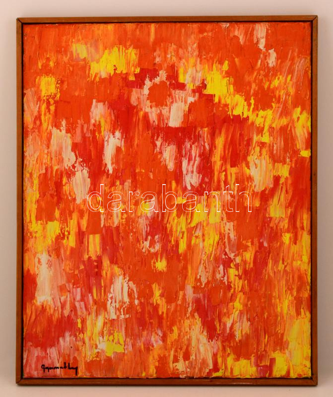 Beschreibung: Gyarmathy jelzéssel: Kompozició. Olaj, vászon, 63×50 cm