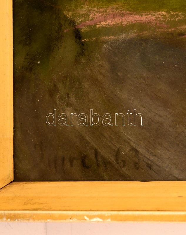 Beschreibung: Imreh Zsigmond (1900-1965):Fa csoport az útnál. Pasztell, papír, jelzett, üvegezett keretben, 34×44 cm