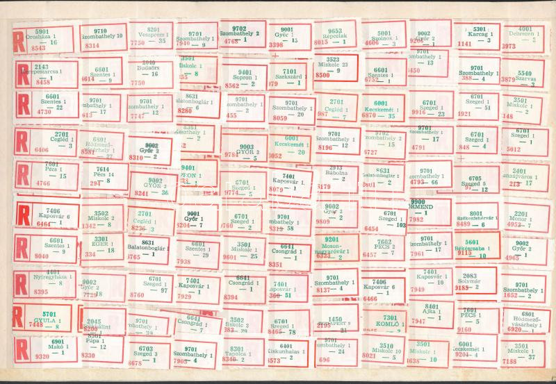 Beschreibung: 220 db ajánlási ragjegy, közte sok nyomdai hibás berakólapon