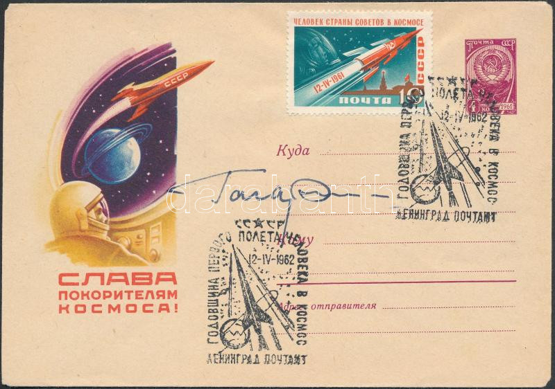 Jurij Alekszejevics Gagarin (1934-1968) orosz űrhajós aláírása emlékborítékon /