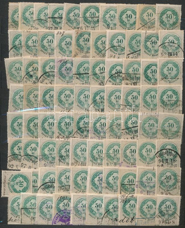 Beschreibung: 1859 160 db 50kr-os okmánybélyeg, hagyatékból berakólapon
