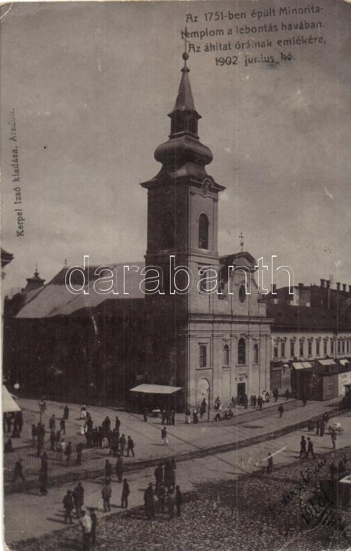 Beschreibung: 1902 Arad, Minorita templom a lebontás havában, fényképezte Weisz Hugó, kiadja Kerpel Izsó / church, photo (EB)