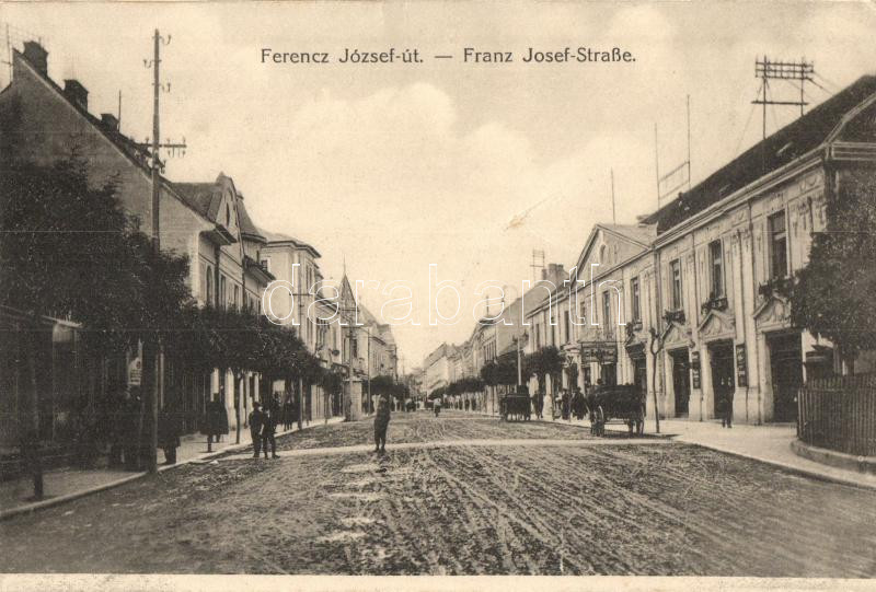 Beschreibung: Pöstyén, Piestany; Ferenc József út, kiadja Lampl Gyula, leporellóból kivágva / street (fa)