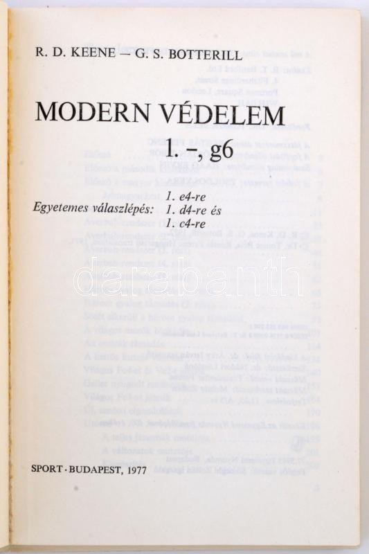 R.D. Keene, G.S. Botterill: Modern védelem. Fordította Dr. Tomor Béla. Budapest, 1977, Sport. Kiadói papírkötés, szövegközti illusztrációkkal. Jó állapotban.