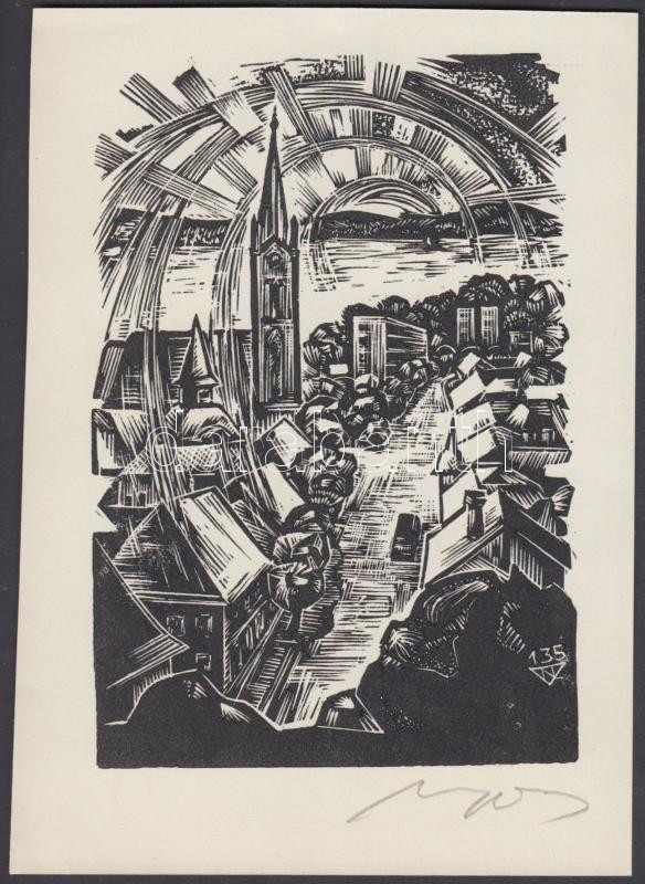 Beschreibung: Nagy Lázár László (1935-): Cegléd ex libris. fametszet, papír, jelzett. 15x11 cm