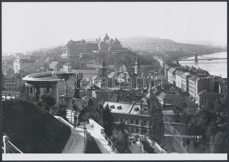 Beschreibung: cca 1925 Budapest, Budai látkép olyan épületekkel, amelyek ma már nem léteznek, korabeli vintage negatívról készült mai nagyítás, 18x25 cm