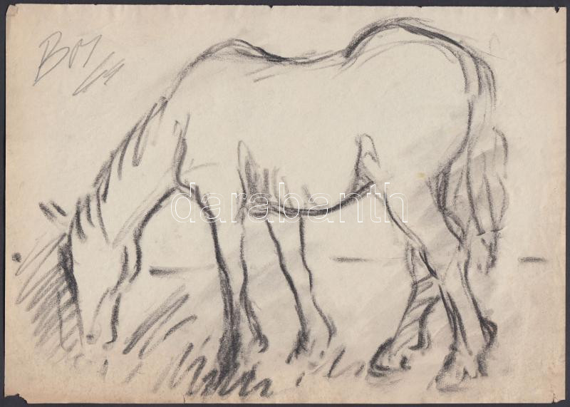 BM jelzéssel: Ló. Szén, papír, 21×30 cm https://www.darabanth.com/de/281-Fernauktion/281.0/Andere-Sammelgebiete/Gemalde-und-Grafiken~1/BM-jelzessel-Lo-Szen-papir-21C39730-cm~II1452609