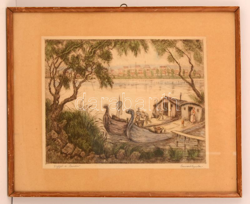 Conrád Gyula (1877-1959): Reggel a Dunán. Színezett rézkarc, papír, je... https://www.darabanth.com/de/281-Fernauktion/281.0/Andere-Sammelgebiete/Gemalde-und-Grafiken~1/Conrad-Gyula-1877-1959-Reggel-a-Dunan-Szinezett-rezkarc-papir-jelzett-uvegezett-keretbe~II1420054