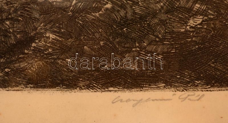 Beschreibung: Csergezán Pál (1924-1996): Őszi szántás. Rézkarc, papír, jelzett, üvegezett keretben, 29×38 cm