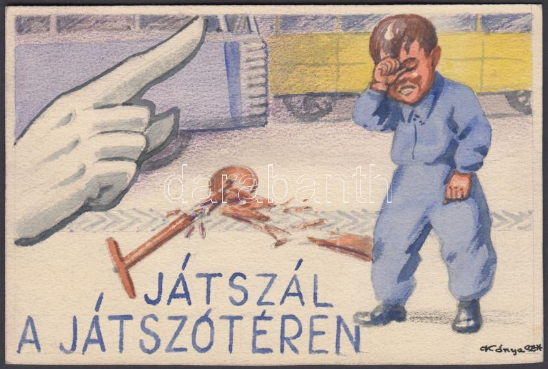 Kónya Zoltán (1891-?): Játszál(!) a játszótéren!, villamos plakátterv,... https://www.darabanth.com/de/281-Fernauktion/281.0/Andere-Sammelgebiete/Gemalde-und-Grafiken~1/Konya-Zoltan-1891-Jatszal-a-jatszoteren-villamos-plakatterv-vegyes-technika-papC3~II1452484