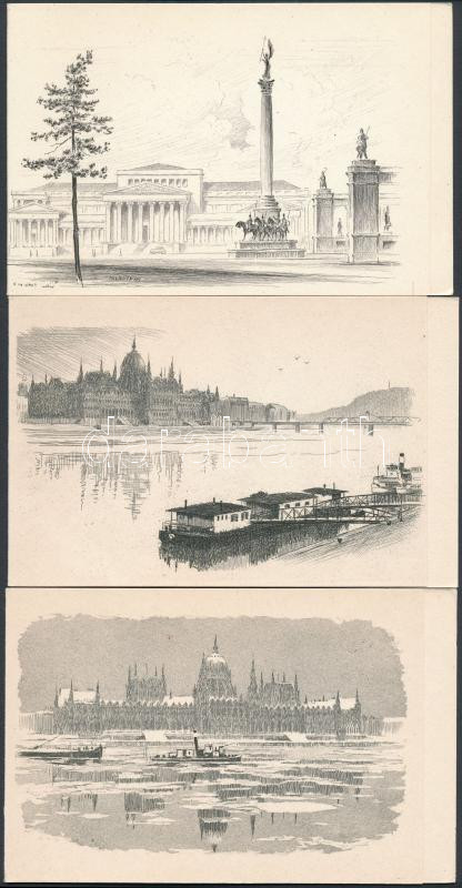 Beschreibung: Nagy Zoltán, Gerstenbrein Ferenc: Budapesti látképek. 3 db rézkarc, hátoldalon feliratozva, 10x14 cm