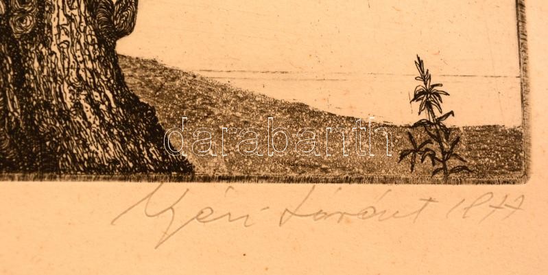 Beschreibung: Nyári Lóránt (1928-1982): Enyészet. Rézkarc, papír, jelzett, 28x47 m
