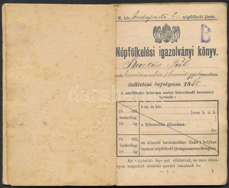 1908 A M. kir. budapesti 2. népfölkelő járás által kiállított népfölke... https://www.darabanth.com/de/281-Fernauktion/281.0/Andere-Sammelgebiete/Militaria~26/1908-A-M-kir-budapesti-2-nepfolkelo-jaras-altal-kiallitott-nepfolkelesi-igazolvanyi-k~II1452095