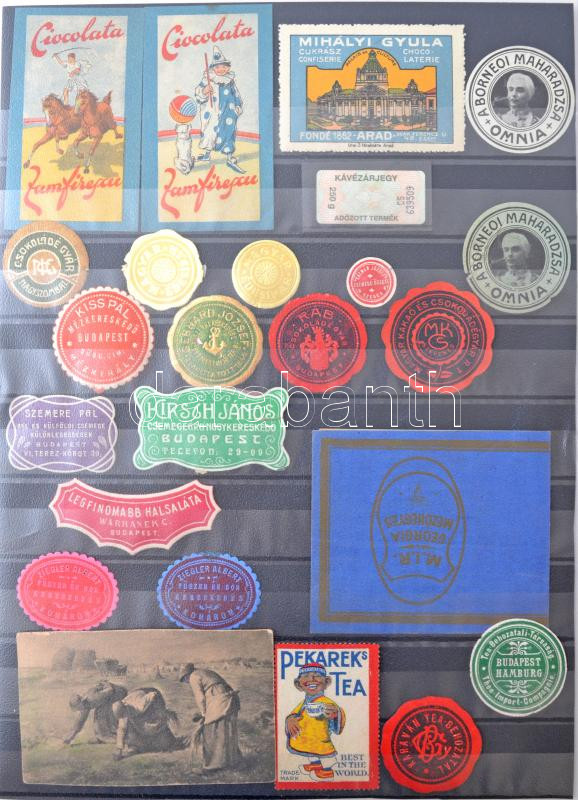 24 db klf reklámbélyeg (méz, kávé, csokoládé, stb.) A4-es berakólapon https://www.darabanth.com/de/281-Fernauktion/281.0/Andere-Sammelgebiete/Paraphilatelie~14/24-db-klf-reklambelyeg-mez-kave-csokolade-stb-A4-es-berakolapon~II1452012