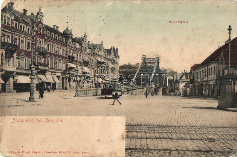 Dresden, Schillerplatz / square, tram shops (fa) https://www.darabanth.com/de/281-Fernauktion/281.0/Ansichtskarten/Deutschland~200051/Dresden-Schillerplatz-square-tram-shops-fa~II1450414