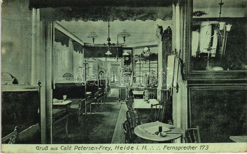 Heide in Holstein, Café Petersen-Frey; Verlag A. Caspersen https://www.darabanth.com/de/281-Fernauktion/281.0/Ansichtskarten/Deutschland~200051/Heide-in-Holstein-Cafe-Petersen-Frey-Verlag-A-Caspersen~II1068738