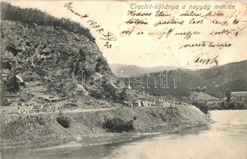Beschreibung: Huszt, Chust; Piros-dombi Trachit (trahit) kőbánya a nagyág mentén, kiadja Ágoston Lajos / mine (EK)