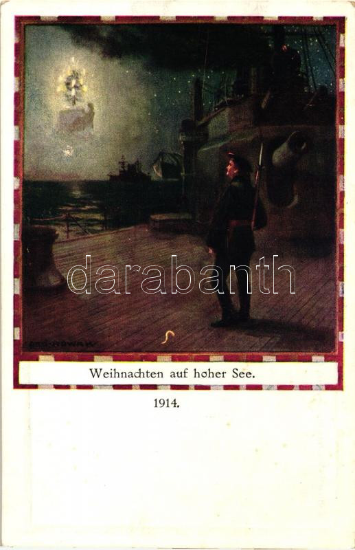Beschreibung: 1914 Weihnachten auf hoher See, Postkartenverlag Brüder Kohn, Wien / K.u.K. Kriegsmarine, Christmas greeting s: Otto Nowak
