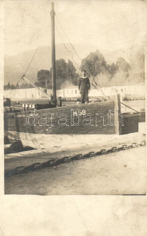 M 59 hajó, tengerész / M 59 boat, mariner, photo (vágott / cut) https://www.darabanth.com/de/281-Fernauktion/281.0/Ansichtskarten/Kriegsschiffe~200077/M-59-hajo-tengeresz-M-59-boat-mariner-photo-vagott-cut~II1451612