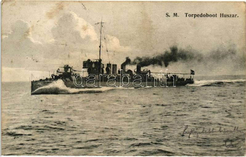 SM Torpedoboot Huszar, a K.u.K. haditengerészet Huszár-osztályú rombol... https://www.darabanth.com/de/281-Fernauktion/281.0/Ansichtskarten/Kriegsschiffe~200077/SM-Torpedoboot-Huszar-a-KuK-haditengereszet-Huszar-osztalyu-romboloja-G-Fano-Pola-1908-~II1380301