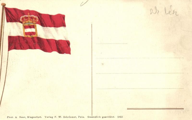 Beschreibung: SMS Alligator osztrák-magyar torpedónaszád, később TB52 / SM Hochseetorpedoboot 'Alligator' / K.u.K. Kriegsmarine, torpedo boat, litho flag on backside