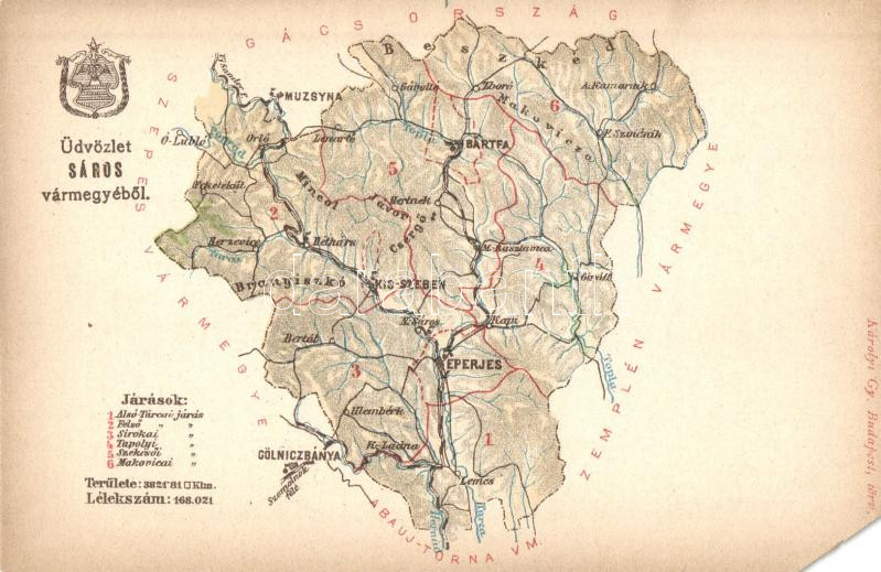 Sáros vármegye térképe, Károlyi Gy. kiadása / Map of Sáros County (EM) https://www.darabanth.com/de/281-Fernauktion/281.0/Ansichtskarten/Landkarte~200101/Saros-varmegye-terkepe-Karolyi-Gy-kiadasa-Map-of-Saros-County-EM~II1449519