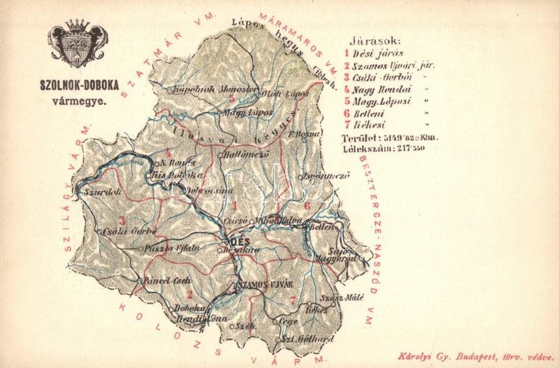 Szolnok-Doboka vármegye térképe, Károlyi Gy. kiadása / Map of Szolnok-... https://www.darabanth.com/de/281-Fernauktion/281.0/Ansichtskarten/Landkarte~200101/Szolnok-Doboka-varmegye-terkepe-Karolyi-Gy-kiadasa-Map-of-Szolnok-Doboka-County-b~II1449563