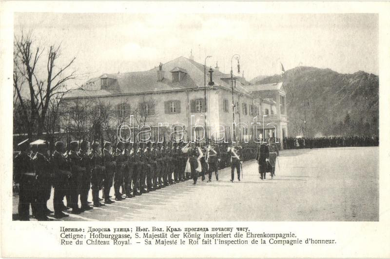 Cetinje, Cettigne; Hofburggasse / castle, street, inspection by the ki... https://www.darabanth.com/de/281-Fernauktion/281.0/Ansichtskarten/Montenegro~200049/Cetinje-Cettigne-Hofburggasse-castle-street-inspection-by-the-king~II1453313