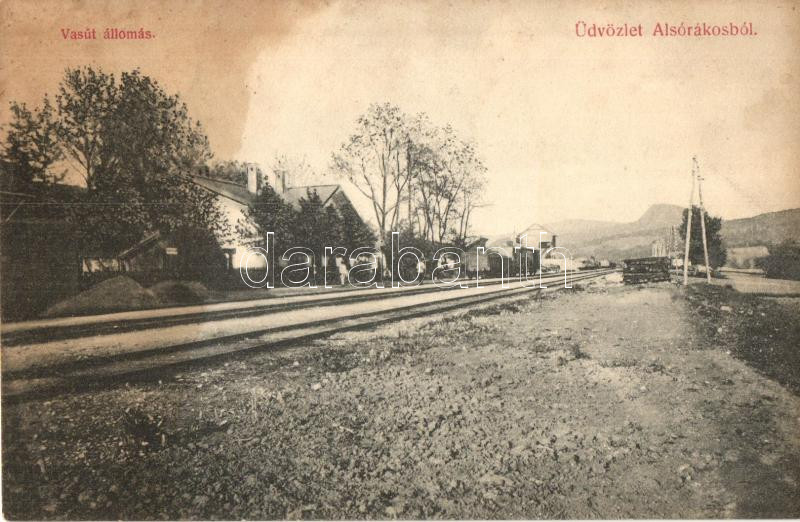 Beschreibung: Alsórákos, Racos; vasútállomás, kiadja Friedmann Áron / railway station (fl)