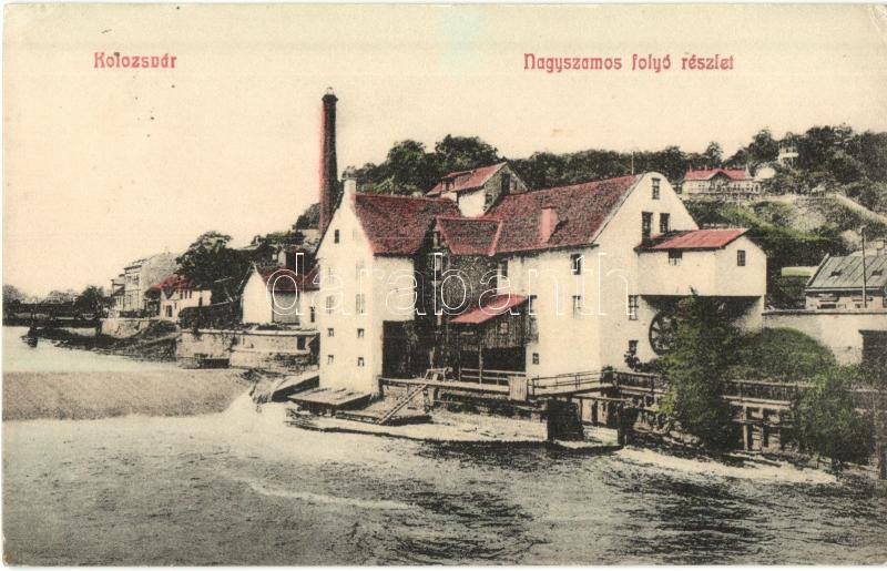 Beschreibung: Kolozsvár, Cluj; Nagyszamos folyó részlet malom, Lehota Anna kiadása / river, mill