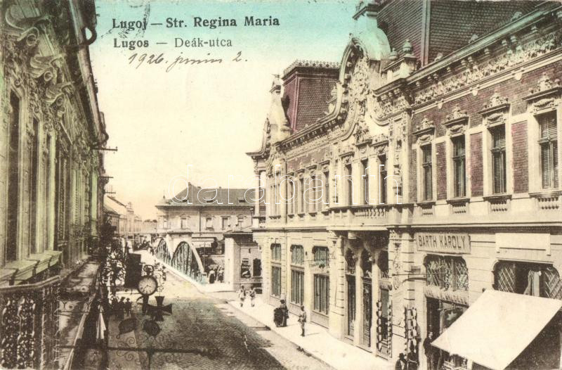 Lugos, Lugoj; Deák utca, Barth Károly utca / Str. Regina Maria, shop https://www.darabanth.com/de/281-Fernauktion/281.0/Ansichtskarten/Siebenburgen~200007/Lugos-Lugoj-Deak-utca-Barth-Karoly-utca-Str-Regina-Maria-shop~II1447084
